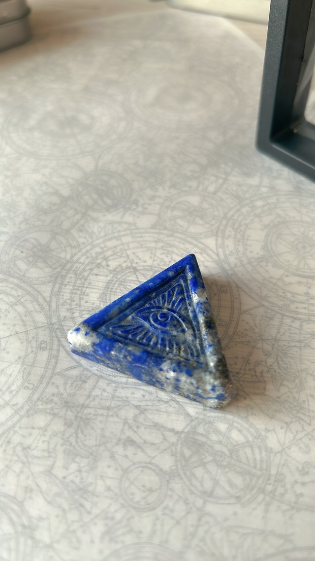 【The All-Seeing Lapis - 真理を宿す、紺青の守護石 -】 「深淵の青に刻まれた、全てを見通す眼。それは単なる装飾ではなく、持ち主の洞察力を研ぎ澄ます『現代の魔導具』」 Lourdes MirrorスタッフのRENです。 手に取った時の重厚感、そして無染色ならではの「生きた石」の表情……。 これなら、目の肥えたお客様にも自信を持ってお届けできそうです。 ■ 天然色が語る、唯一無二の物語 このラピスラズリは、人工的な色付けを一切行っていません。 深い青、白のカルサイト、そして星屑のような金色のパイライト。 この3色が混ざり合う複雑な表情は、天然石であることの何よりの証明です。 お届けするのは、世界に二つとない「地球の欠片」そのものです。 ◾️動画はこちら ▼ https://youtu.be/lTd8F1cE6KA ■ 思考のノイズを払う「全知全能の眼」 ピラミッドの正面に刻まれているのは、叡智の象徴である「全知全能の眼」。 古くから知恵を象徴するラピスラズリと、この「眼」の組み合わせは、まさに持ち主の直感や判断力をサポートするためにあるようなもの。 仕事中のデスクや、静かに自分と向き合う場所に。 この鋭い視線が、あなたの決断から迷いを消し去ってくれるはずです。 ■ 重厚な存在感と、届いてすぐ飾れる美しさ 手に収まるサイズながら、1cmを超える厚みがあり、その存在感は抜群です。 紐を通す穴がないため、石本来の美しさと彫刻の意匠を存分に堪能いただけます。 また、動画でもご紹介した「専用ディスプレイケース」をセットでお届けします。 届いたその瞬間から、あなただけの特別な空間を演出することが可能です。 ⚠️ お迎えいただく前にお読みください(Lourdes Mirrorの誠実な約束) • 天然石の個性について:無染色の天然鉱物を使用しているため、模様の出方や色の濃淡には、一つひとつ明確な個体差があります。 • 造形について:手作業による彫刻とカットを施しているため、形状にわずかな歪みや、角に微細な欠けが見られる場合がありますが、石の風合いとしてお楽しみください。 ■ 商品詳細 • 名称:ラピスラズリ・プロビデンス・ピラミッド • 素材:天然ラピスラズリ(無染色) • サイズ: • 底面:約36.6mm前後 • 厚み:約10.3mm(重厚な厚みがあります) • 付属品:専用ディスプレイケース
