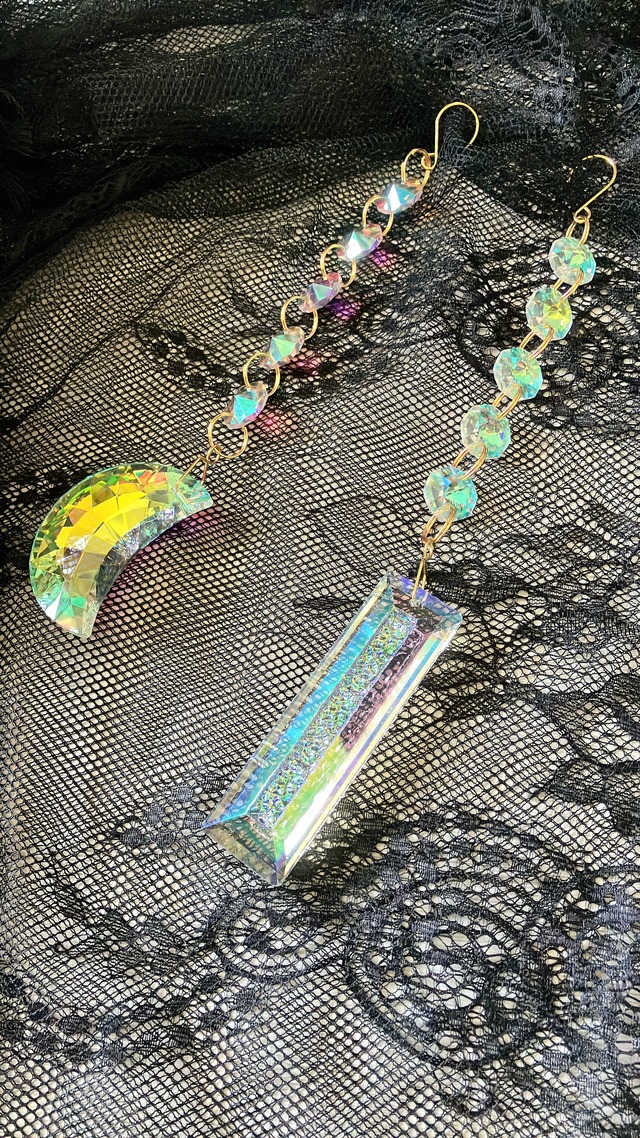 【肌を想う、ステンレス】月と星が揺れる。夜空のロングチェーンピアス