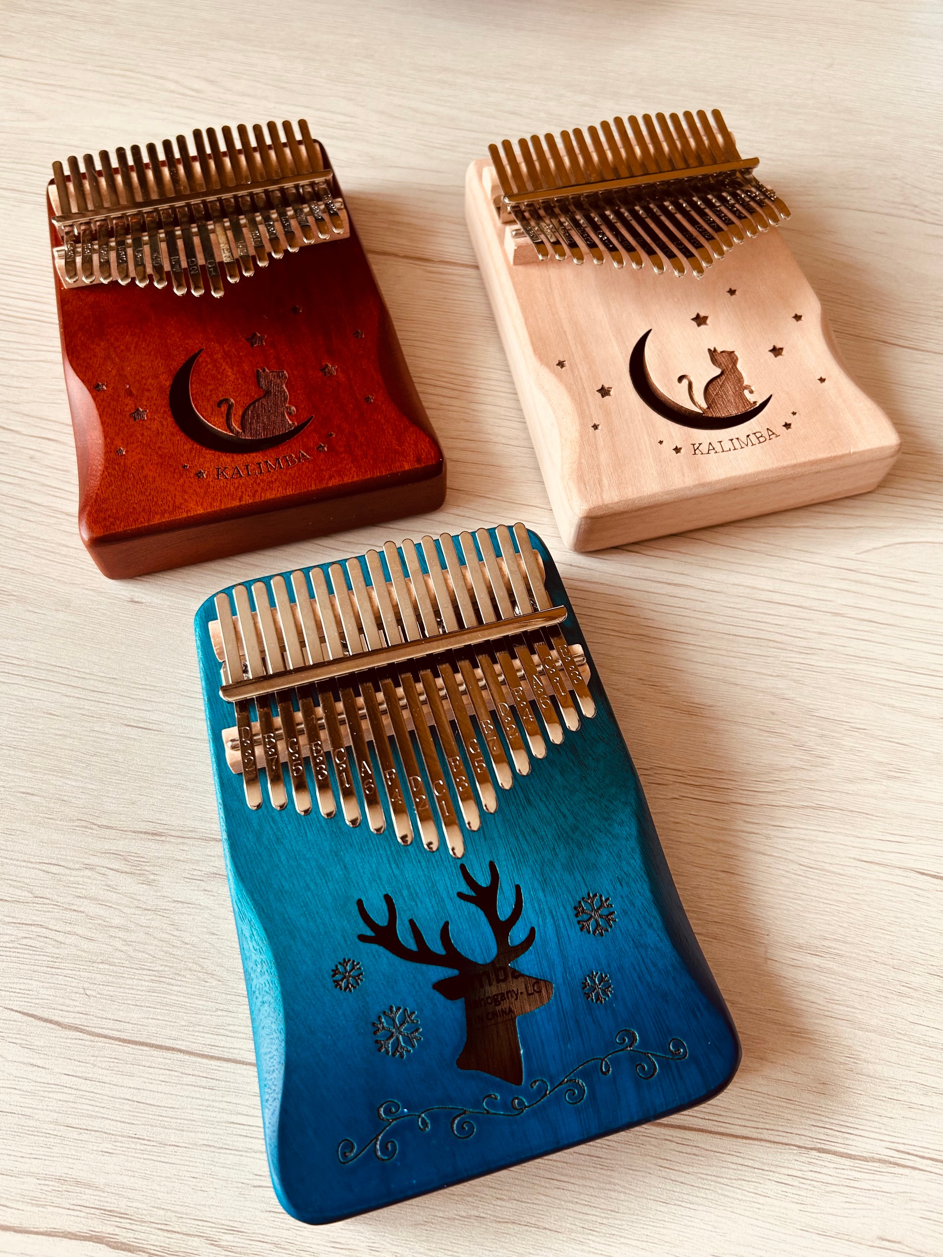 【夜のしじまの音色】カリンバ|17キー・木製(調律済み・動画ガイド付き・SH-Ccat,Deer)