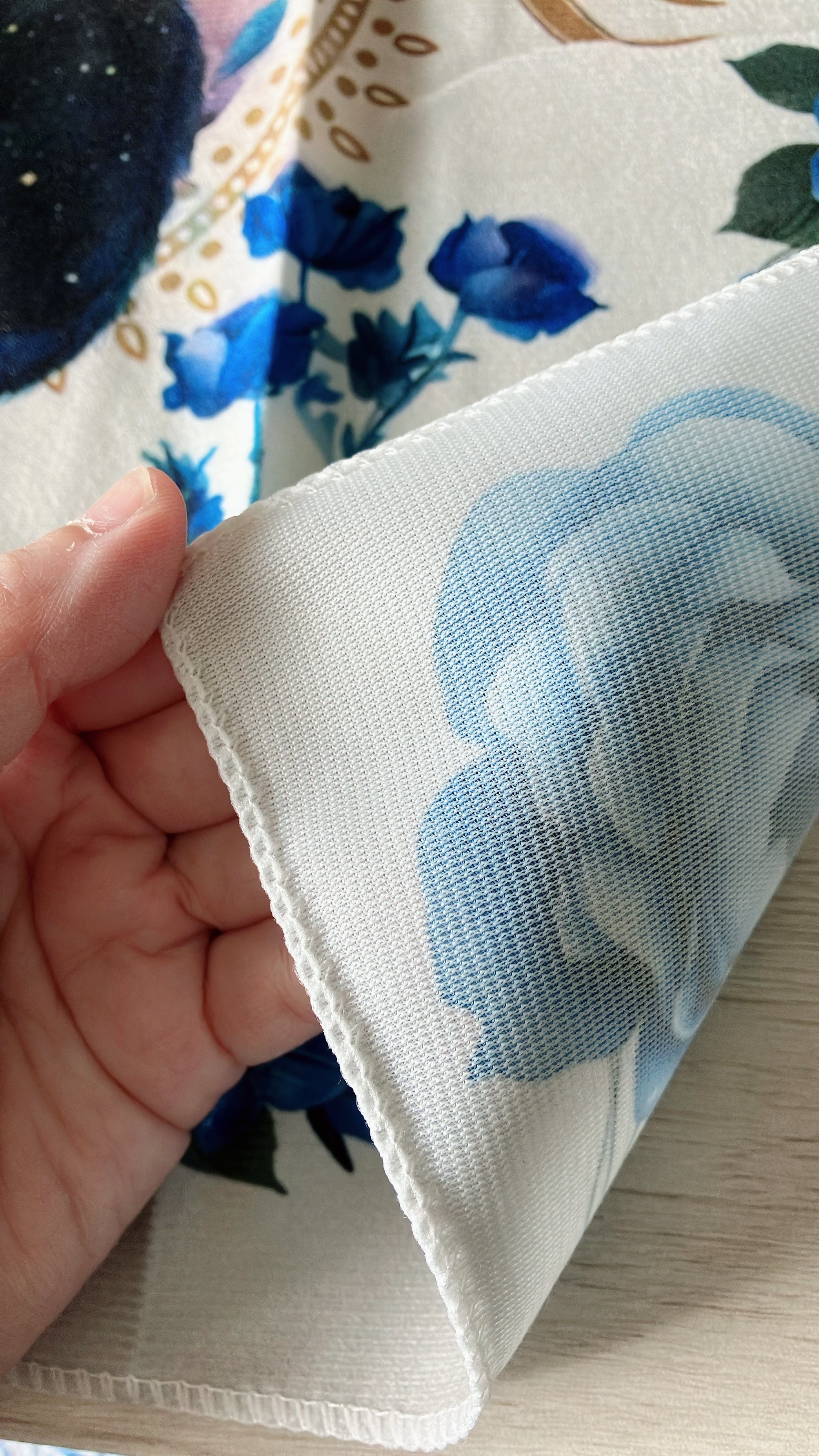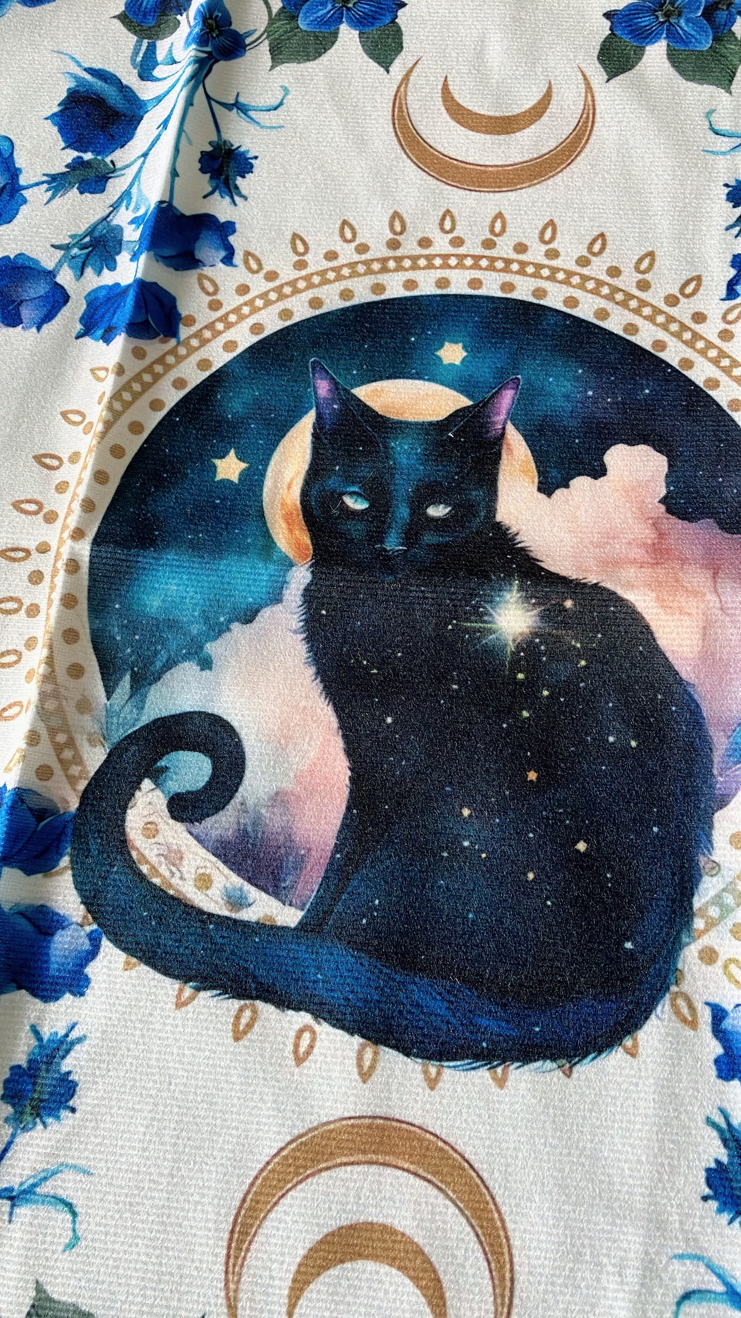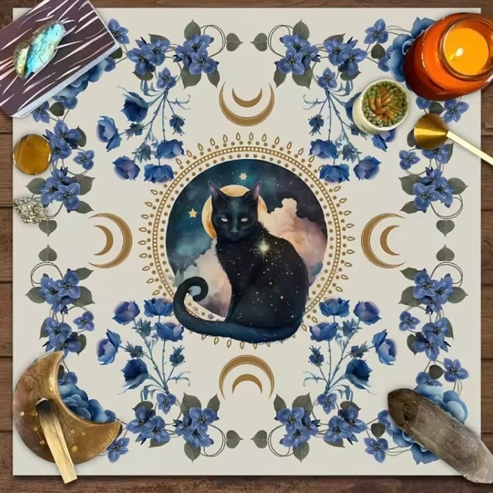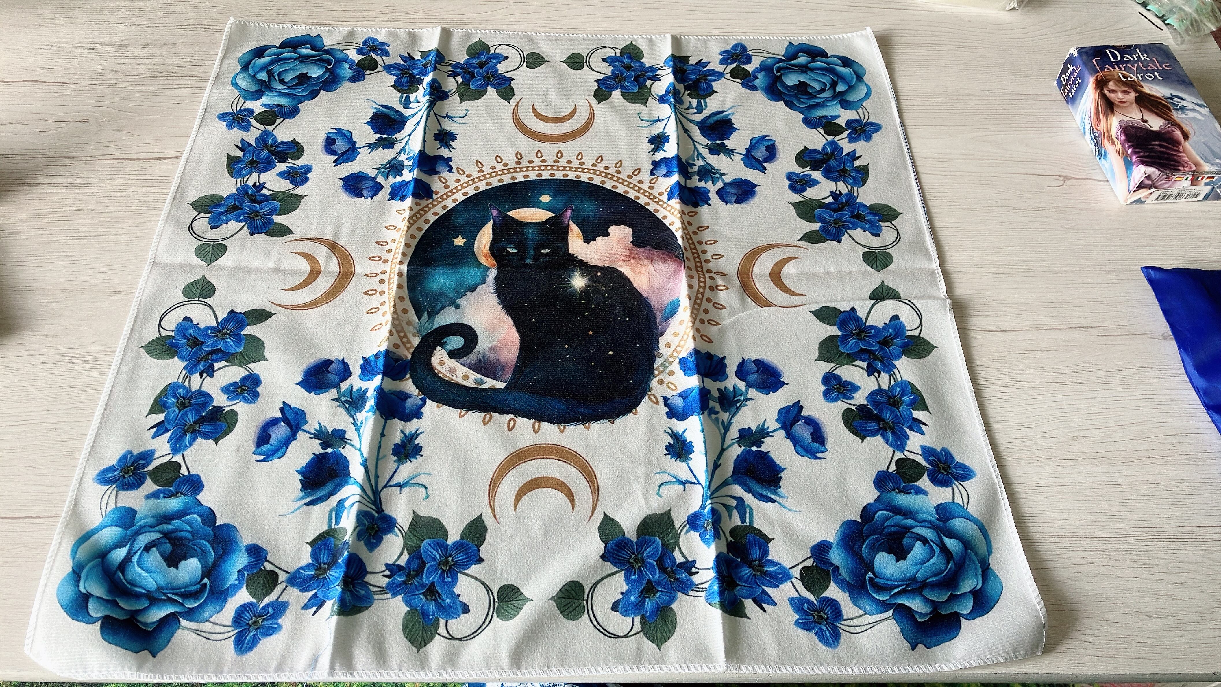 かわいい黒猫がセンターに鎮座しているタロットマットです。