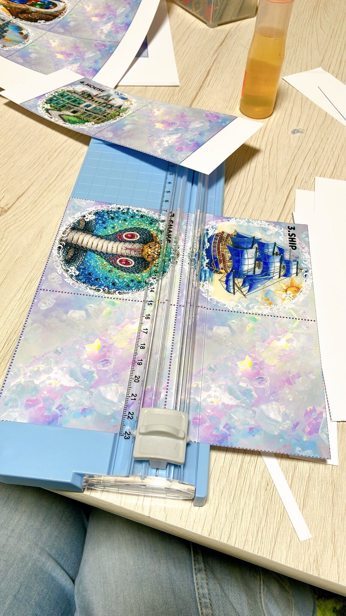 横長でカットした後、真ん中で折り接着して仕上げるルノルマンカードです。