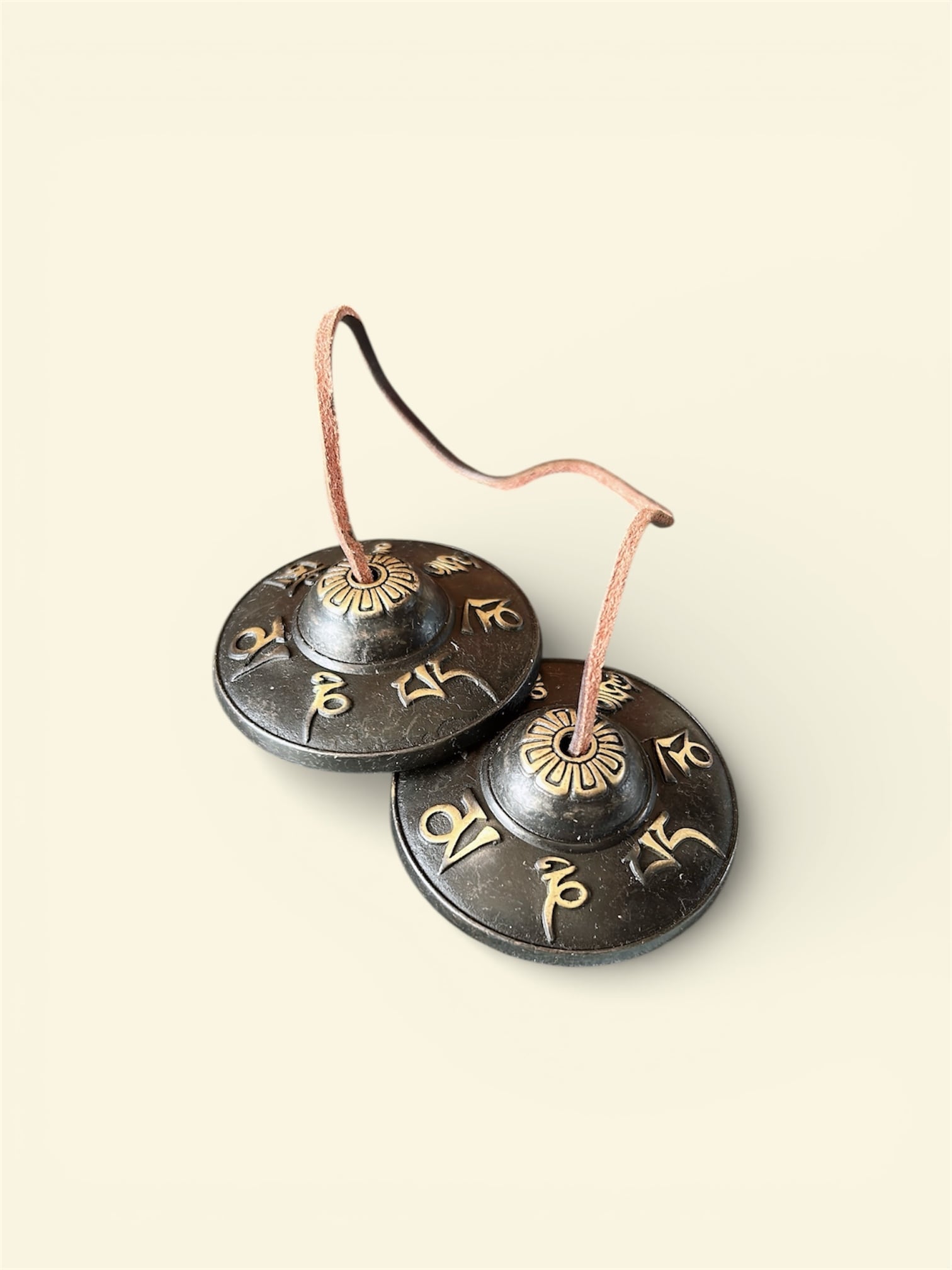 手に取るとずっしりとした重みがあり、表面には「オム・マニ・パドメ・フム」などの神聖なマントラ(真言)が美しく刻まれています。このティンシャを一度鳴らせば、その澄み渡る高音が空間の澱みを瞬時に払い、静寂と平穏をもたらしてくれるでしょう。