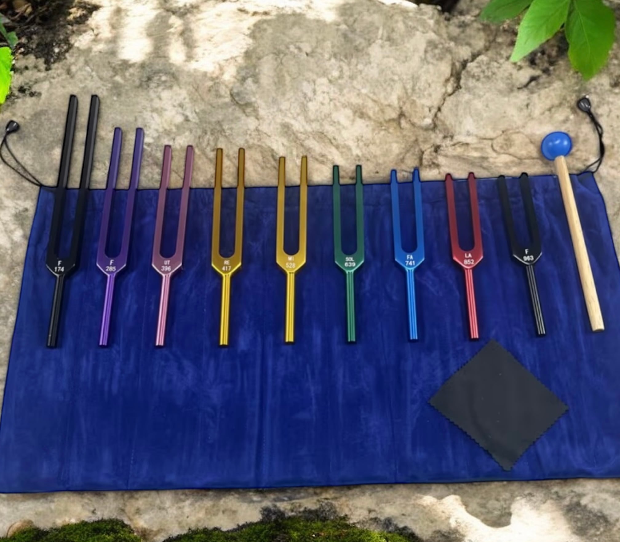 • 9 Solfeggio Tuning Forks (Engraved with frequencies)