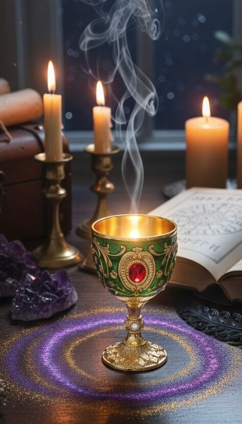 この聖杯は、儀式においてエネルギーを物質世界へと繋ぎ止めるための「媒体(メディウム)」として、特別な意図を持って選ばれた逸品です。