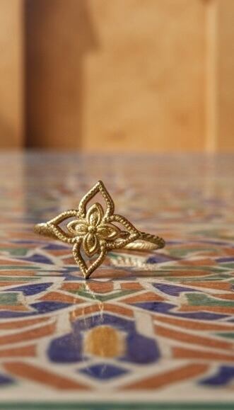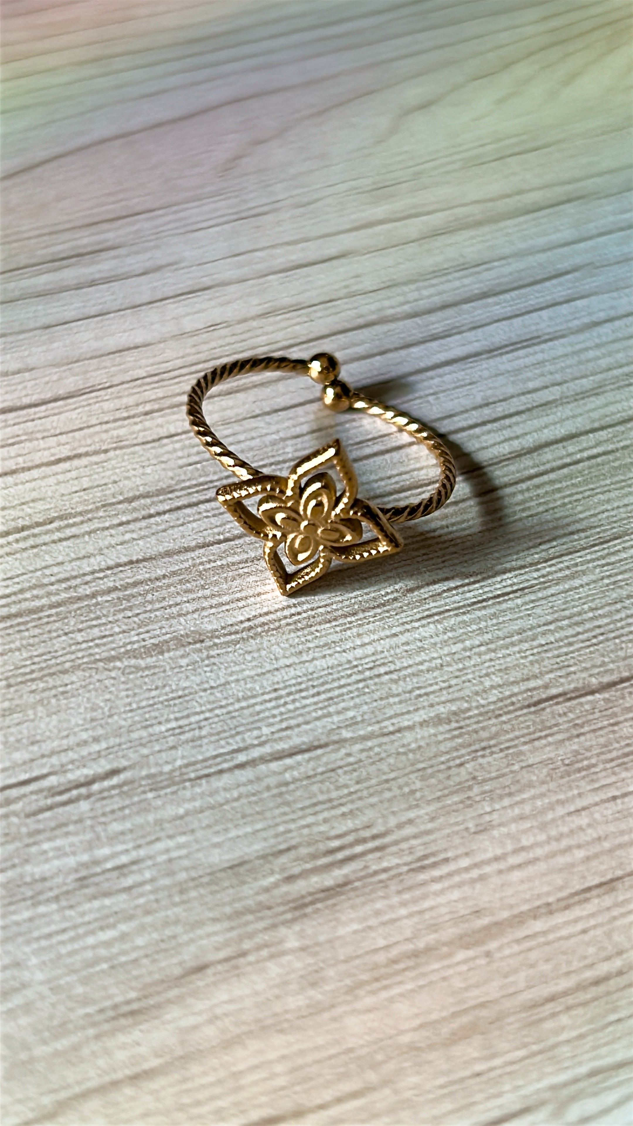 【幸運の四つ葉】アンティーク調 ツイストライン・フラワーリング — 繊細な透かし彫りが描く、黄金の守護符 —