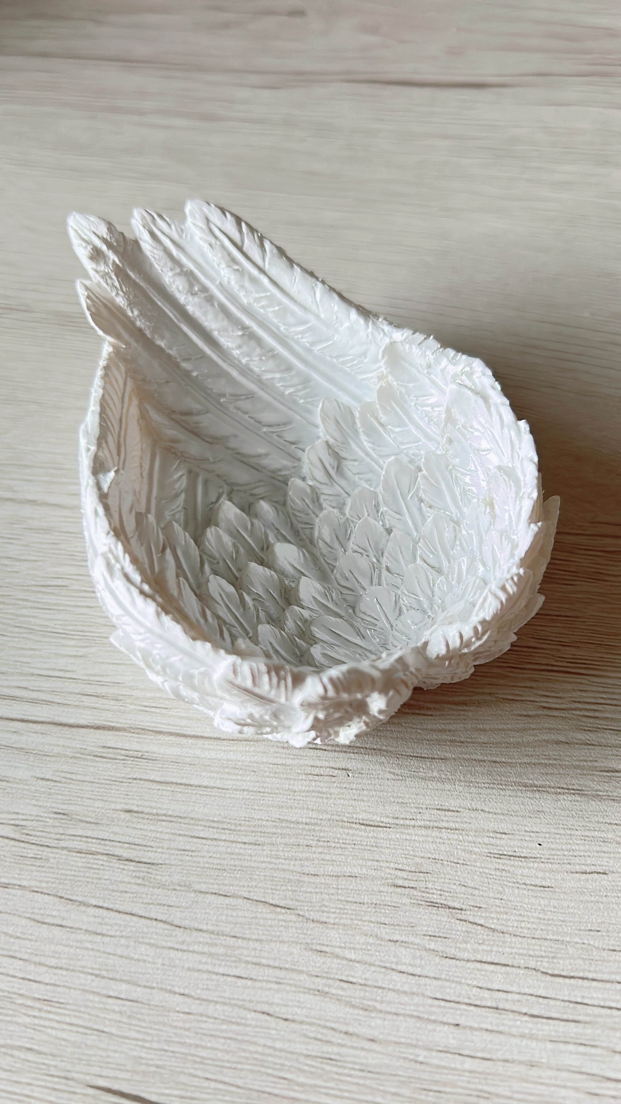 完全なつや消しではなく、光の加減で「しっとりとした柔らかな光沢」が浮かび上がります。大理石のような滑らかな質感が、羽の立体感をより優美に際立たせています。