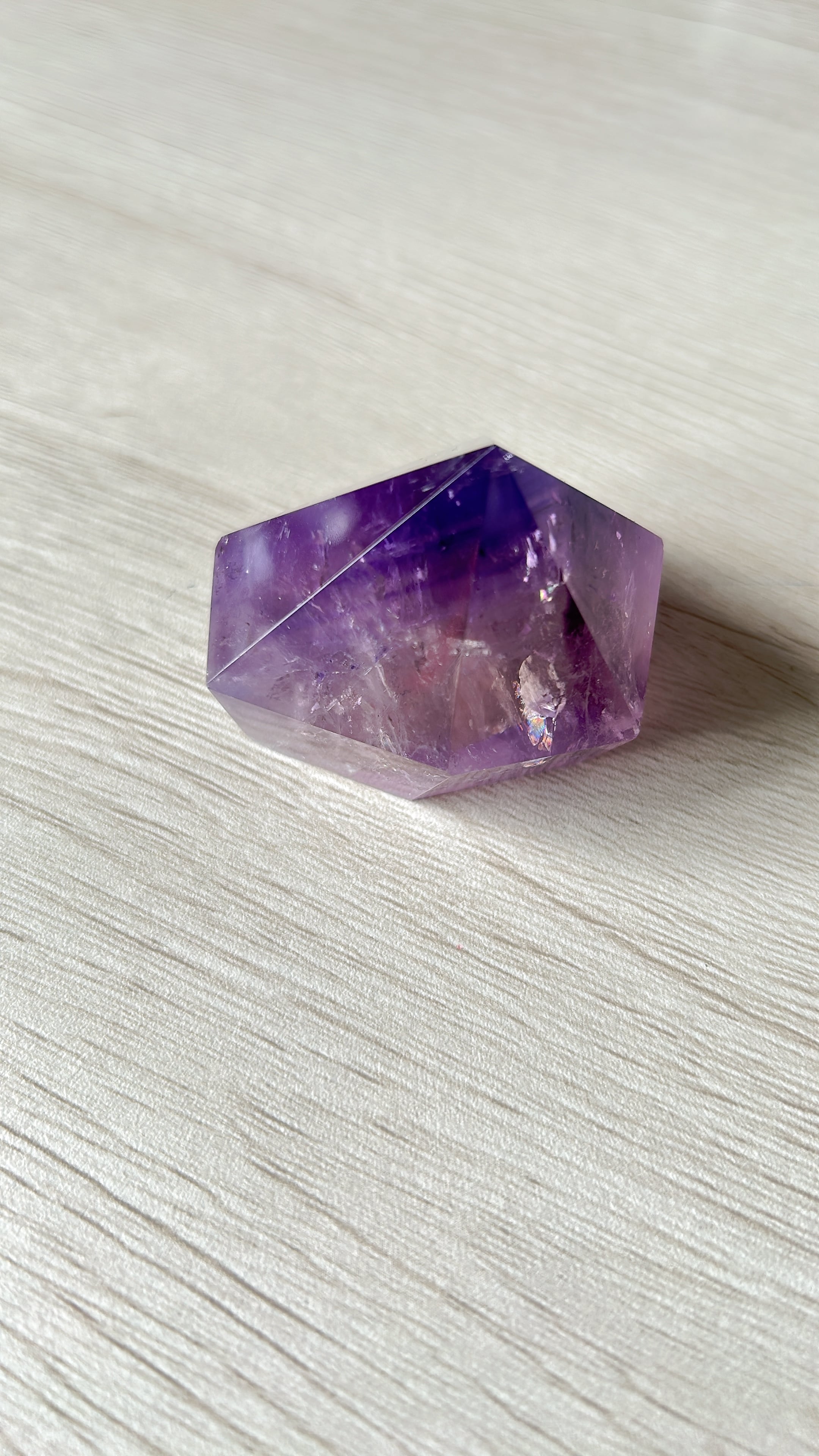 動画でご覧いただける通り、このアメシストには、その両端を繋ぐ「グラデーションの層」が美しく刻まれています。