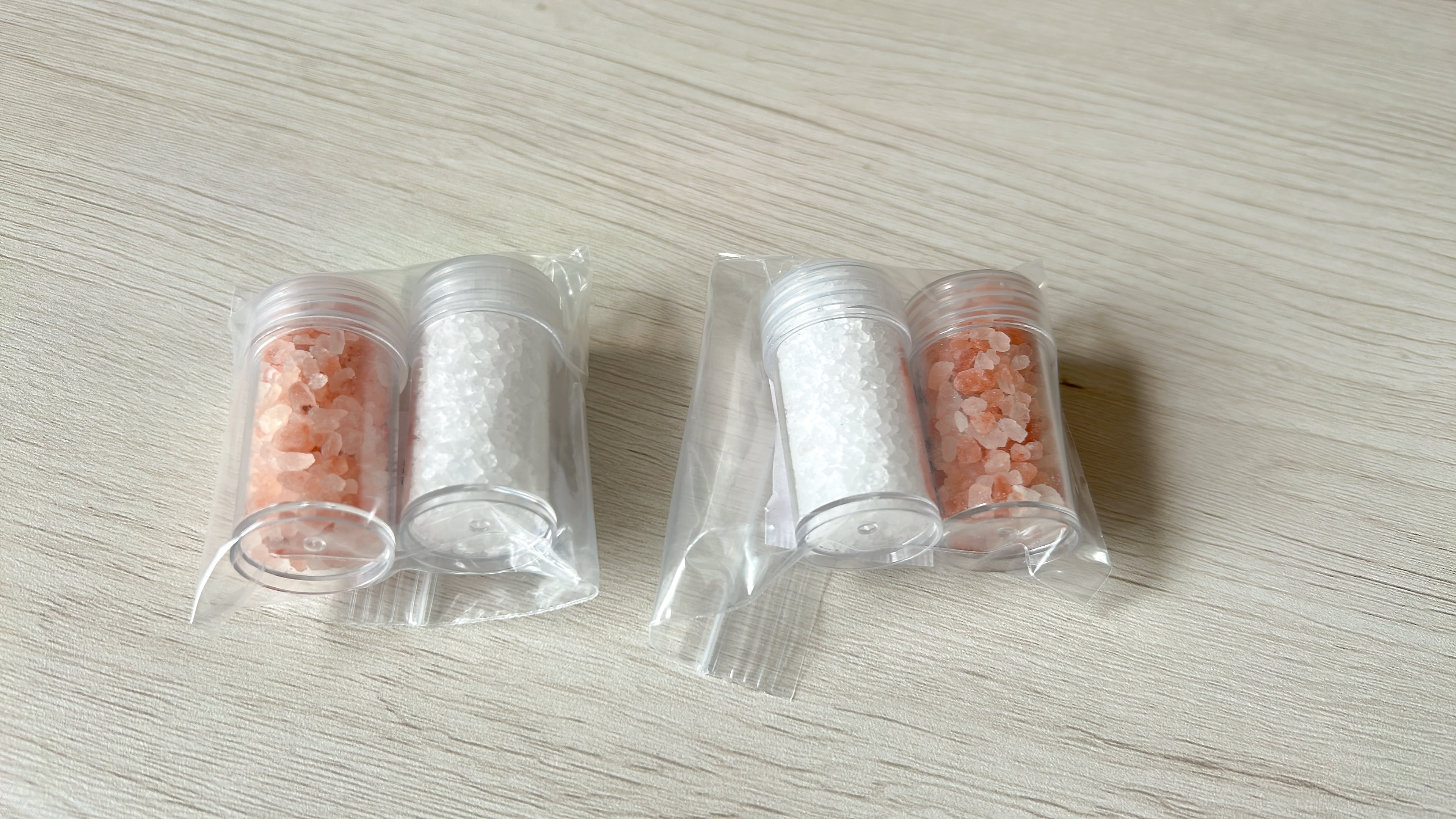 天然の岩塩を使用し、手作業でパッキングしているため、粒の大きさや色味に個体差が生じる場合がございます。また、食用ではございませんので口に入れないようご注意ください。乳幼児、ペットが届かない場所に保管してください。